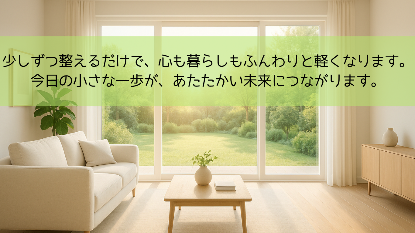 希望を見つける『生前整理アドバイザー2級認定講座』 2025.10.08 生前整理 生前整理が必要な理由とは? 2025.09.29 生前整理 生前整理はじめの一歩 ~過去を振り返る~ 2025.07.15 生前整理 家計整理はじめの一歩 2025.07.14 家計整理 操体法を伝えたい 2025.07.12 操体法 50代を楽しもう 2025.05.18 生前整理 tomoe整えマスターProfile過去をふりかえり、今を整えて、未来へつなぐ。 そんなお手伝いをしています。 「いつかやろう」が「やってよかった」に変わるように。 生前整理・家計整理・体のケアを通して、 自分らしく生きる一歩を一緒に見つけていきましょう。 プロフィールを読むInstagramLINE